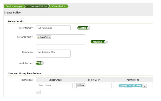 Apache Ranger (https://hwxjojo.staging.wpengine.com/hadoop/ranger/) is a centralized security administration solution for Hadoop that enables administrators to create and enforce security policies for HDFS and other Hadoop platform components.