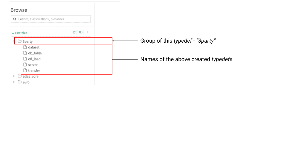 4. Check the Atlas UI after adding the 3rd party typedefs & classification to validate the new entities have been added.