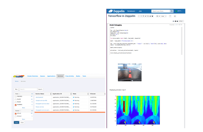 We leverage the power of HDP 3.0 from efficient storage (erasure coding), GPU pooling to containerized TensorFlow and Zeppelin to enable this use case. We will the save the details for a different blog (please see the video)- to summarize, as we trained the car on a track, we collected about 30K images with corresponding steering angle data. The training data was stored in a HDP 3.0 cluster and the TensorFlow model was trained using 6 GPU cards and then the model was deployed back on the car. The deep learning use case highlights the combined power of HDP 3.0.