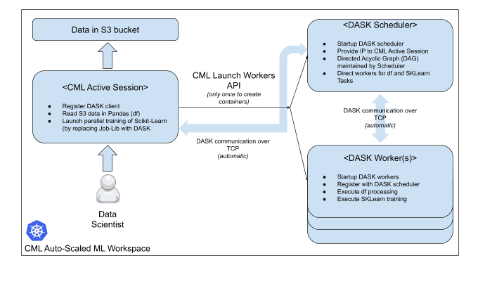 In the context of this article, it’s about Dask’s tight integration with Sckit-learn’s JobLib parallel computing library that allows us to distribute Scikit-learn code with (almost) no code change, making it a very interesting framework to accelerate ML training.