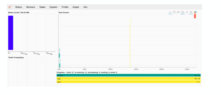 DASK provides an interesting Dashboard where we can peek into the progress of execution of the training.