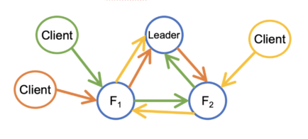 V1.2. The client must write to the Raft leader. The leader will then forward the data to its two Raft followers. In the Raft consensus algorithm, a leader is elected among the servers in a Raft group. The other servers become its followers.