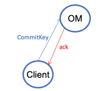 V1.4. The client sends a commit-key request to the Ozone Manager (OM).
