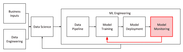 There will also be times where the input data has changed so that the features which were originally selected during the data science process will no longer be as relevant to the outcome being predicted, and simply retraining the model will not yield better performance results. At this point, it becomes necessary to go back to the data scientist, and to re-look at the whole process. This may require adding new data sources or completely re-engineering the model, but this is an equally critical part of the model lifecycle. The model monitoring process must take this into account as well.