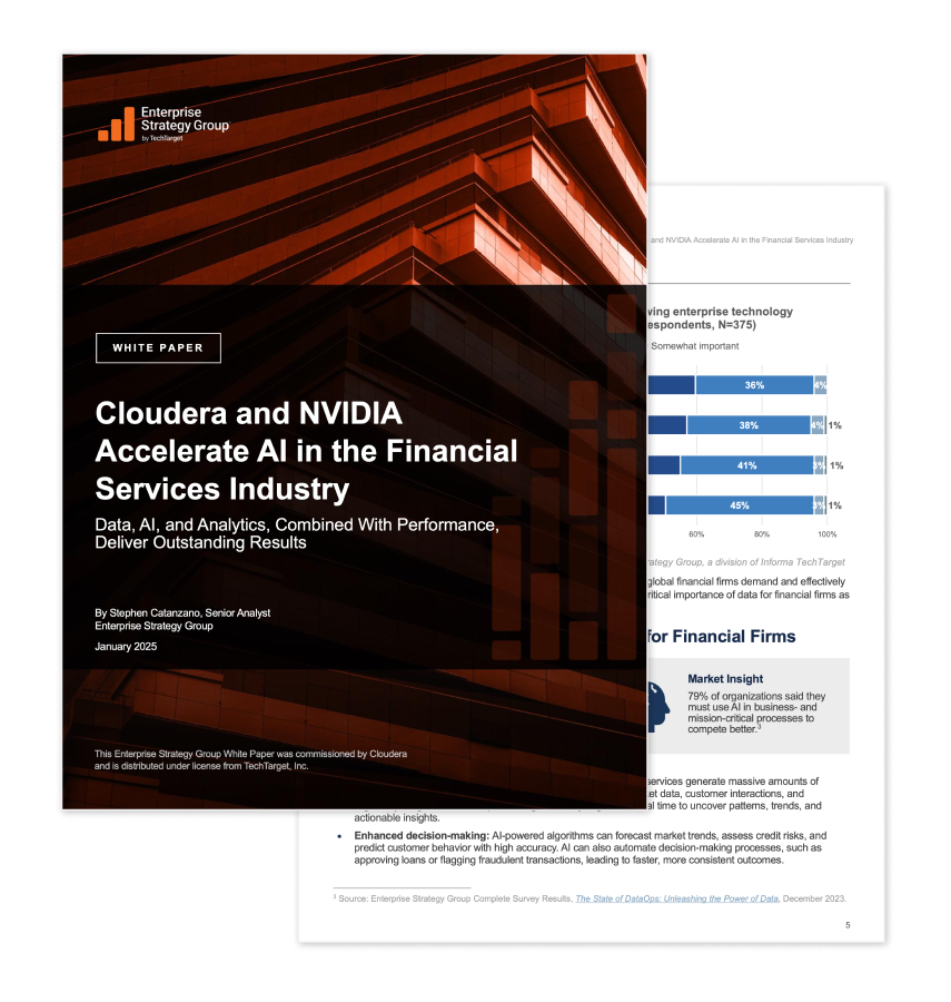 Delivering these capabilities requires a modern data platform capable of handling complex workflows and achieving exceptional performance. In collaboration with NVIDIA, Cloudera provides an advanced solution that meets these demands, enabling financial institutions to accelerate AI initiatives with precision and scale.